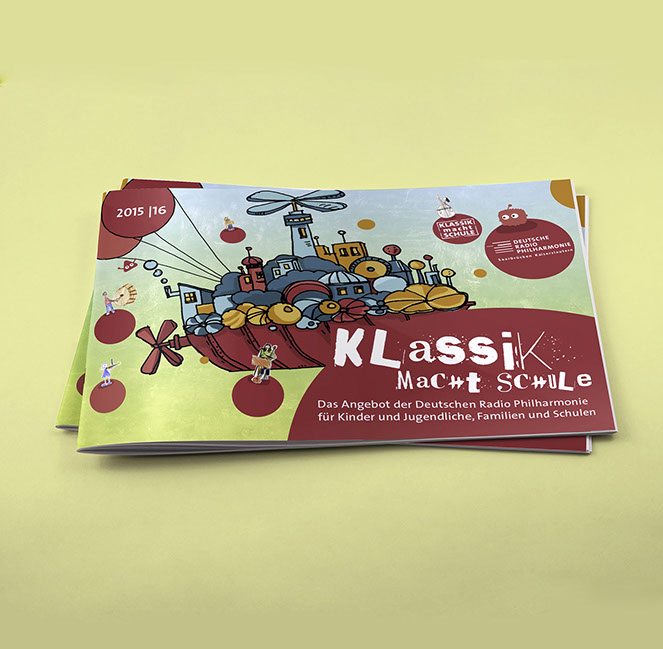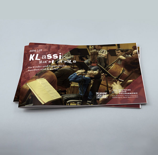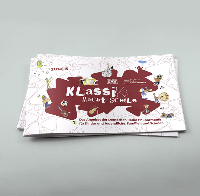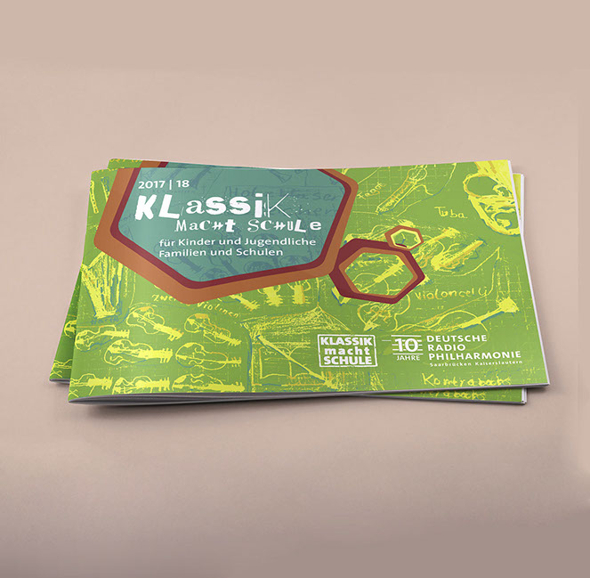 Klassische Musik für junge Ohren. Dies ist das Ziel der „Reihe Klassik macht Schule“ der Deutschen Radio Philharmonie. Die einmal jährlich erscheinende, in frechen und bunten Farben gestaltete Broschüre, präsentiert das Jahresprogramm Klassik macht Schule für Kinder ab 4, Schüler, Lehrern und Eltern. Dies sind die Arbeiten von 2014 bis 2017.
